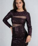 Turn up the heat in the Cosmic Dusk Sequin Cutout Mini Dress Wine. With its glittering sequin finish, daring cutout panels, and curve-skimming mini fit, this look was made for the dance floor. Long sleeves balance the bold design, while the sheer mesh cutouts add just the right dose of edge. Pair with strappy heels and a confident vibe—because this dress doesn’t just sparkle, it slays.