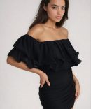 Honey Lips Off Shoulder Ruched Mini Dress – Black