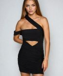 Ignite your style in the Wild Pulse One Shoulder Front Cutout Mini Dress Black, perfect for club nights, cocktail parties, and statement-making events. Featuring a daring one-shoulder neckline, bold front cutout, and figure-hugging ruched silhouette, this dress is made to turn up the heat. Pair with strappy heels and sleek accessories for a look that keeps the energy high all night long.