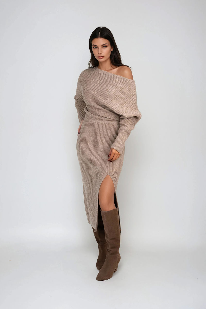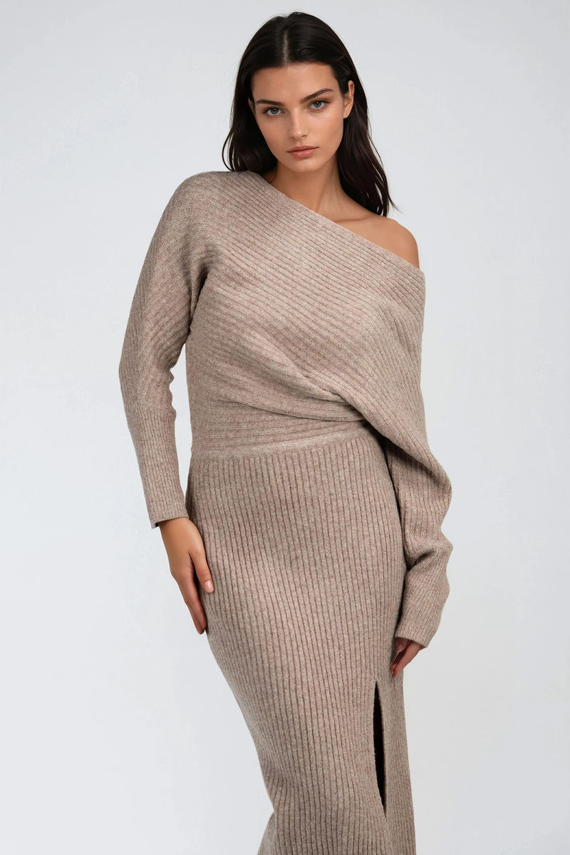 Own the moment this season in the Winter Luxe One Shoulder Sweater Midi Dress in Latte. Crafted from a cozy ribbed knit with a sleek one-shoulder neckline and sultry front slit, this dress blends warmth with effortless allure. Perfect for holiday dinners, winter date nights, or chic weekend outings, it delivers comfort without sacrificing style—pair it with tall boots or heels for a look that’s as luxe as it is unforgettab